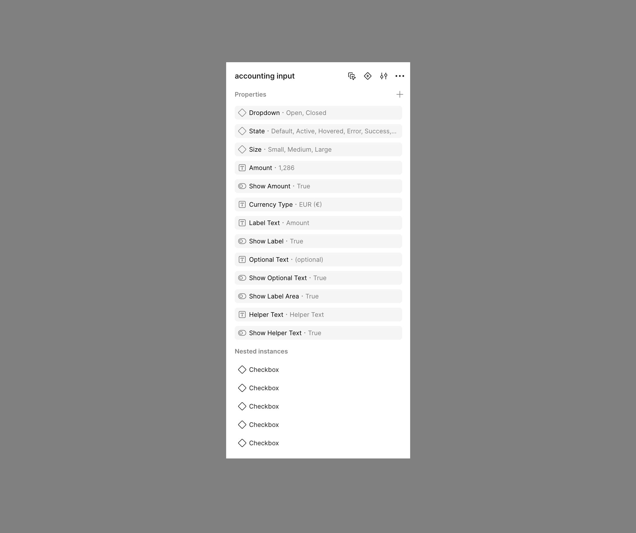 Variants were limited to meaningful configuration axes to prevent sprawl. Each component had a defined, bounded property set: