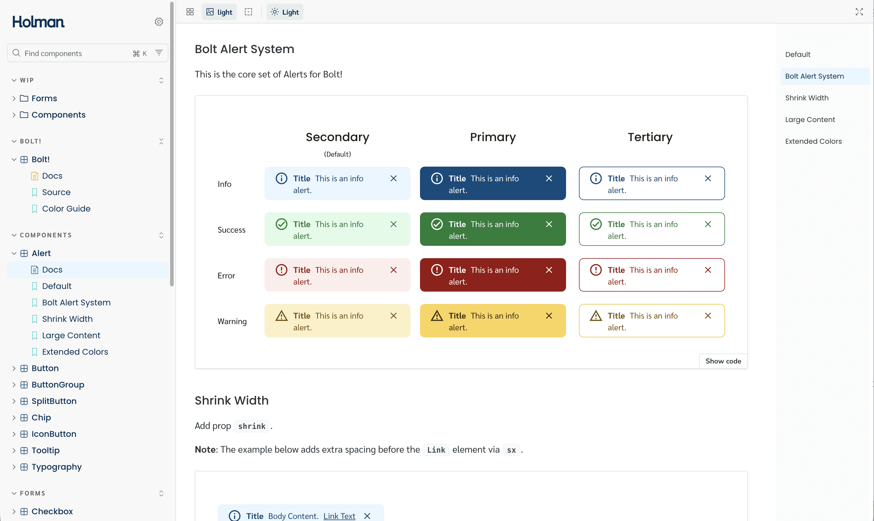 /* Token structure: category / role / property / state */ color/ action/ background/default → primary button fill background/hover → primary button hover state foreground/default → text on primary button feedback/ error/background → error state fill success/foreground → success text / icon color brand/ primary/default → Holman brand primary buttons/ size/ large/padding-x → mapped to spacing/5 large/padding-y → mapped to spacing/3 /* React prop: size="large" consumes buttons/size/large/* */ /* CSS output: var(--color-action-background-default) *